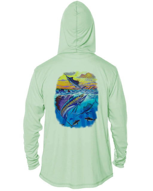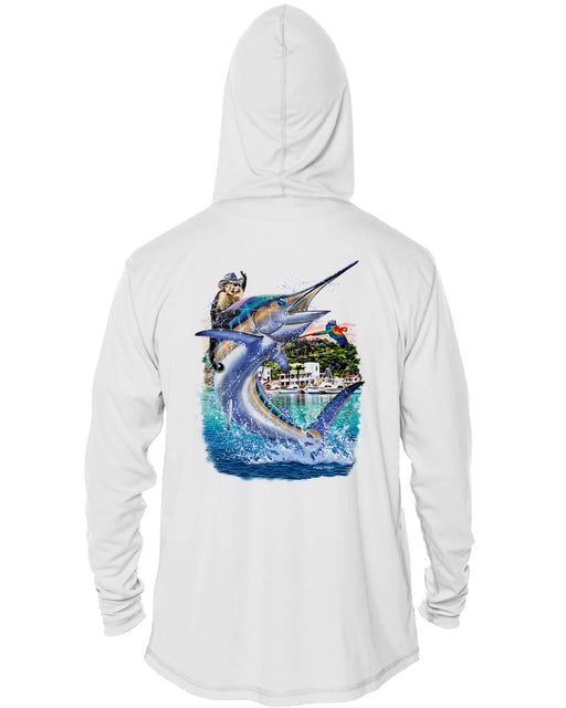 View full detailsMen’s Hooded Sailfish Performance Shirt – “Offshore Glory” by Carey Chen