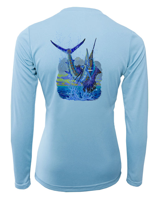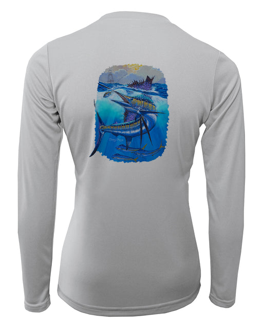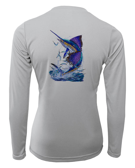 View full detailsWomen’s Long Sleeve Sailfish Performance Shirt – “Sailfish Leap” by Carey Chen
