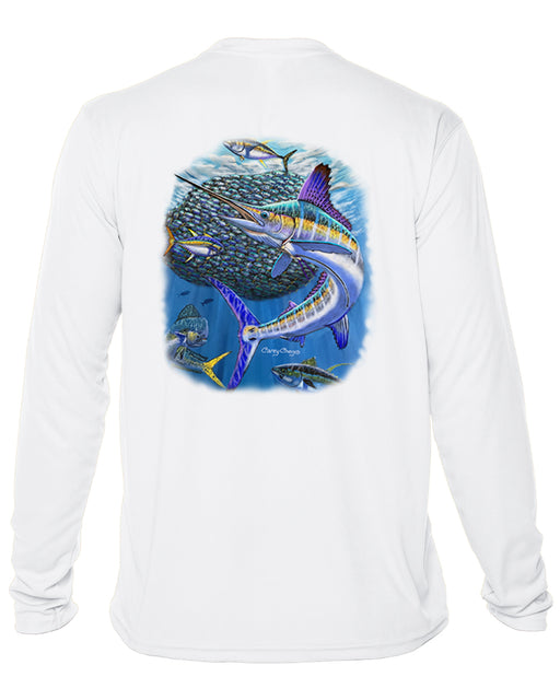 Youth White Marlin Performance Shirt – “Bait Ball Frenzy” by Carey Chen