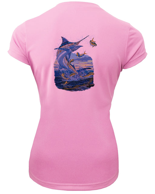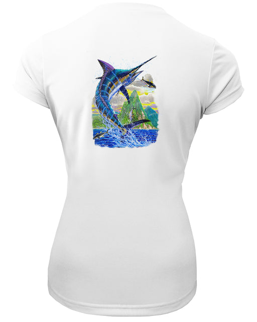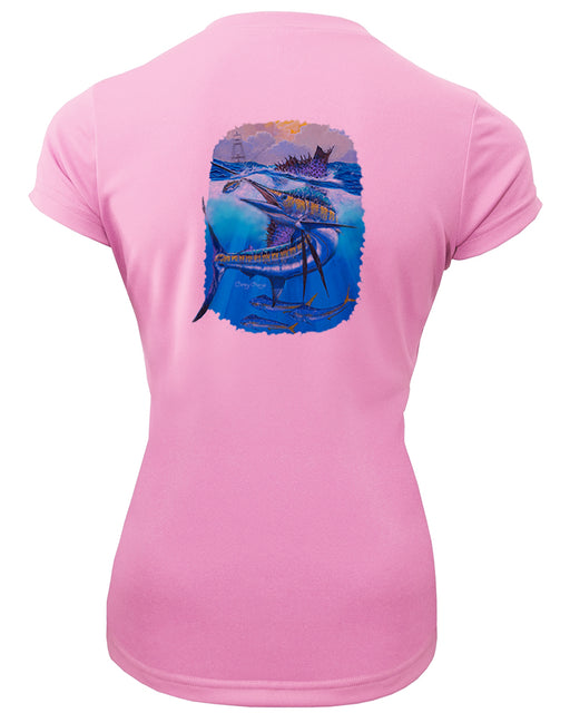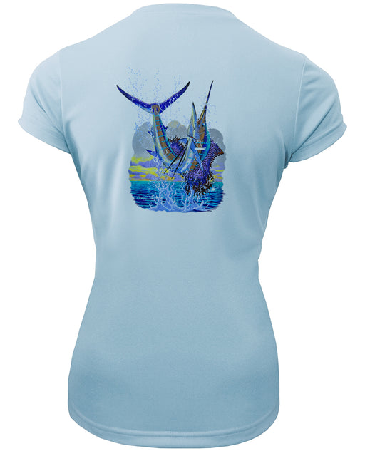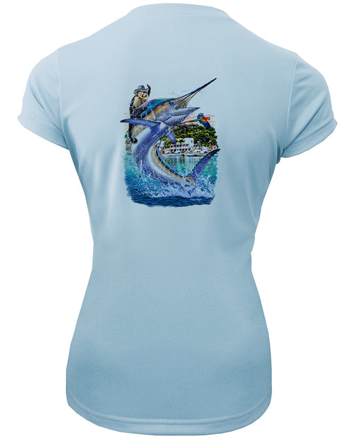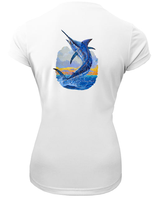 Women’s Short Sleeve Marlin Jump Performance Shirt – “Ocean Royalty” by Carey Chen