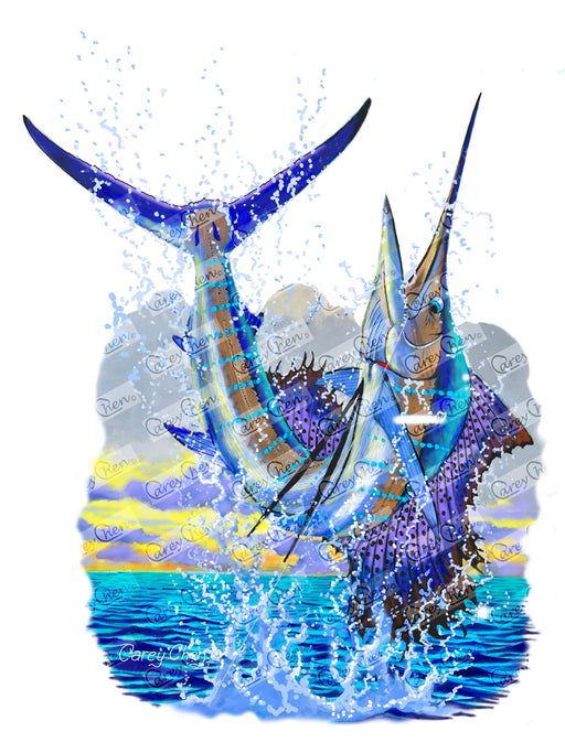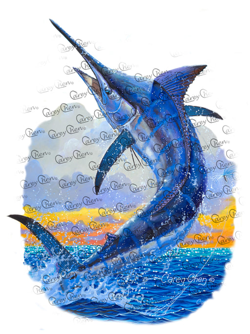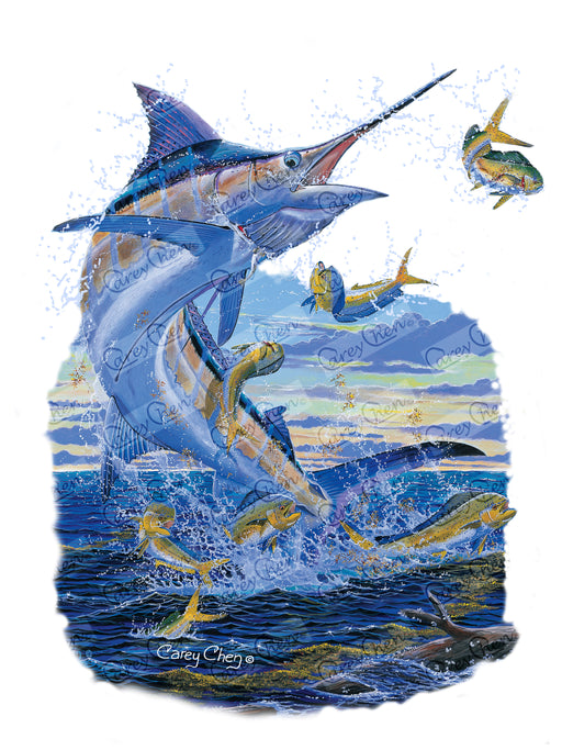 Youth Marlin Jump Performance Shirt – “Ocean Royalty” by Carey Chen