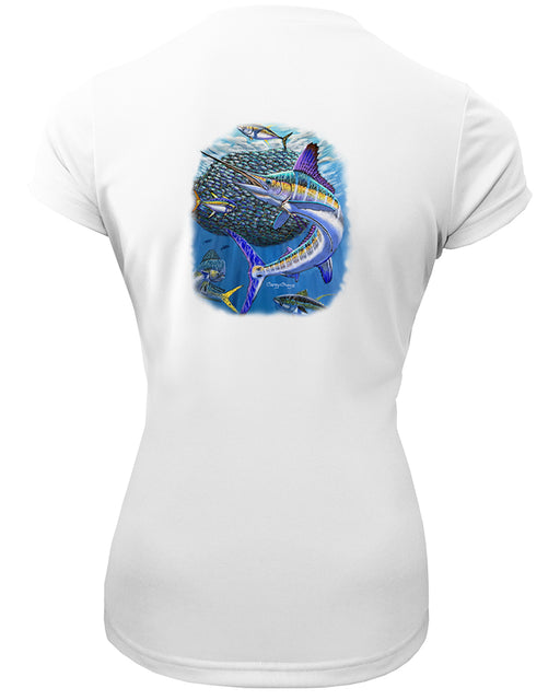 View full detailsWomen's Short Sleeve 'Bait Ball Frenzy' V-Neck Shirt