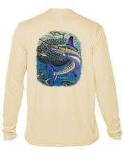Men’s White Marlin Performance Shirt – “Bait Ball Frenzy” by Carey Chen