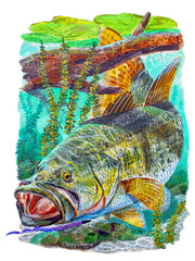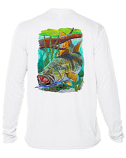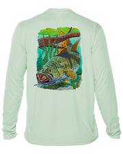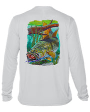Men’s Long Sleeve Bass Fishing Performance Shirt – “Bass Strike” by Carey Chen